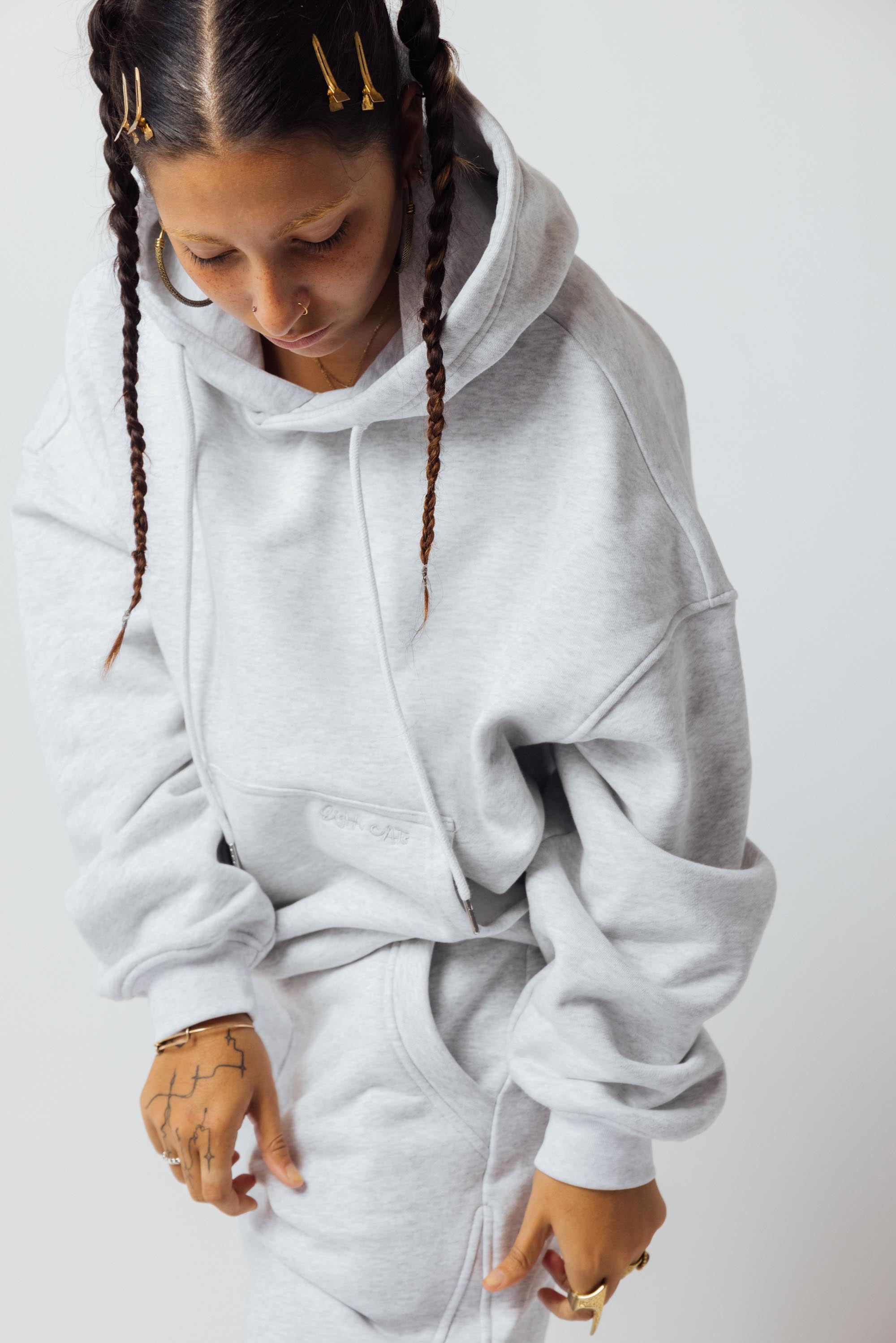 Featuring the ultimate cozy sweat sets - Oversized hoodie, bloomer shorts, and sweatpants.
