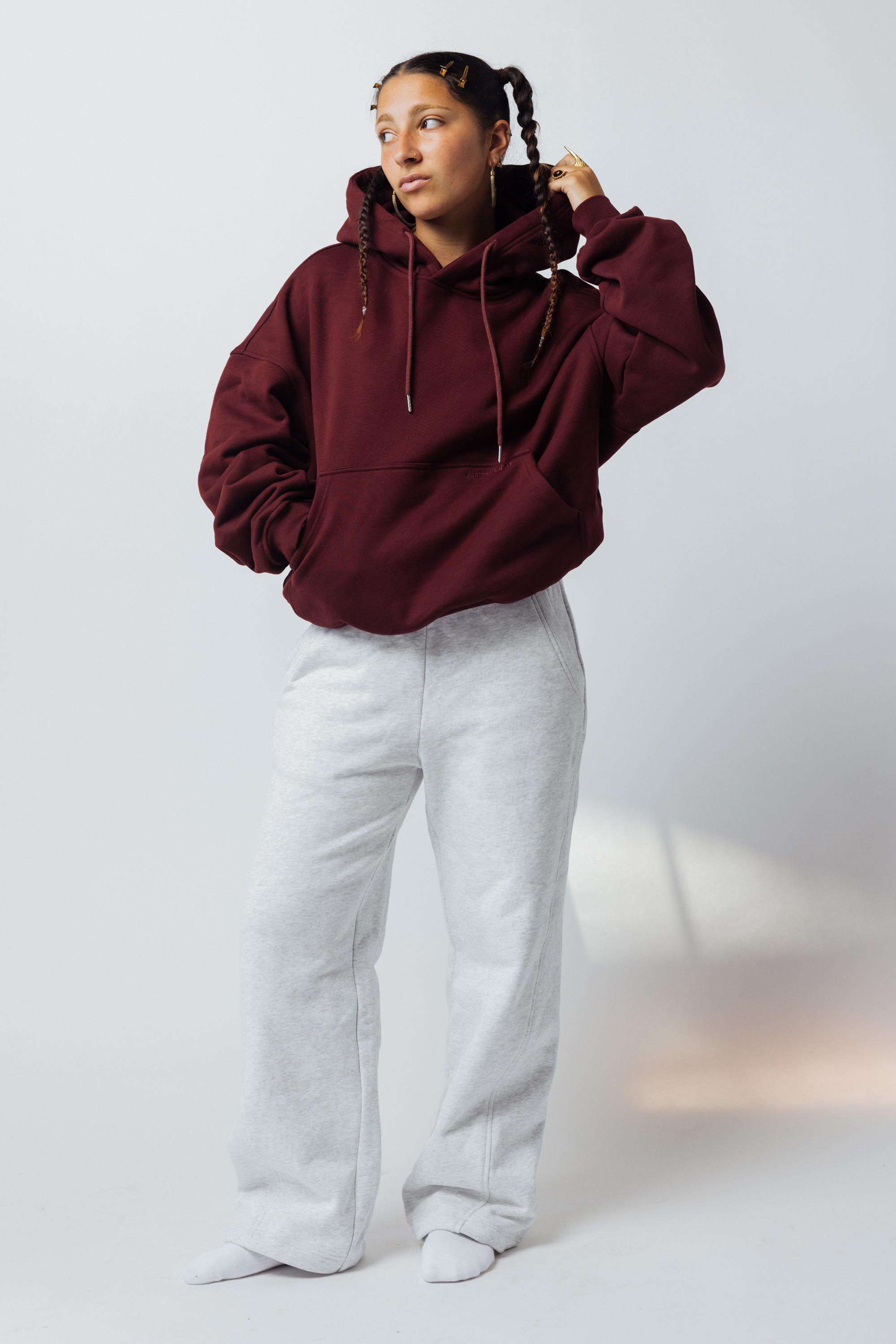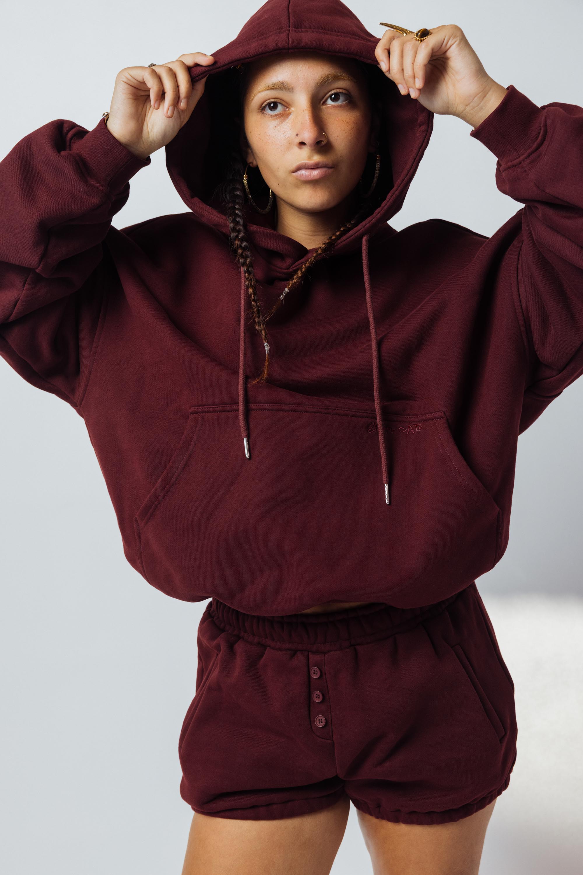 Featuring the ultimate cozy sweat sets - Oversized hoodie, bloomer shorts, and sweatpants.